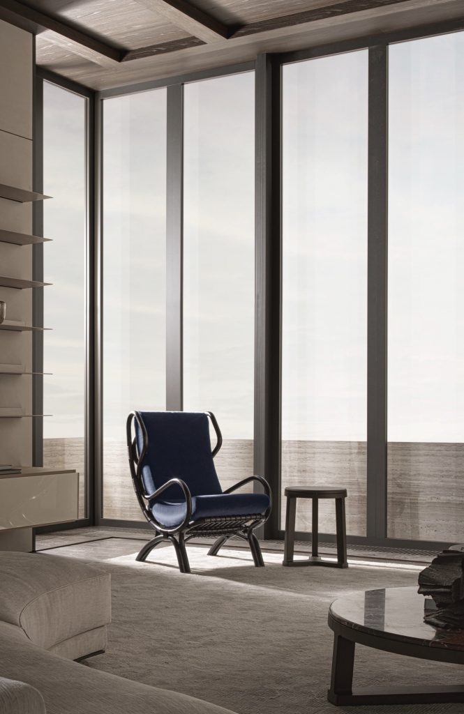 The Continuum armchair, designed by Gio Ponti in 1963, joins the Molteni&C Heritage catalog for the 2024 Collection. This piece embodies the collaboration between Molteni&C and Bonacina 1889, companies that preserve the craftsmanship of the Brianza region. Its fluid and organic design, flowing from headrest to armrest, showcases an intricate rattan treatment, using manao and wicker from Indonesian equatorial forests. The manufacturing in Italy involves over 200 hours of meticulous craftsmanship. Available in a variety of textile and leather finishes, the Continuum cushions add a touch of elegant comfort. With this launch, Molteni&C reaffirms its commitment to Gio Ponti’s legacy and exceptional quality, in line with its sustainability policy.