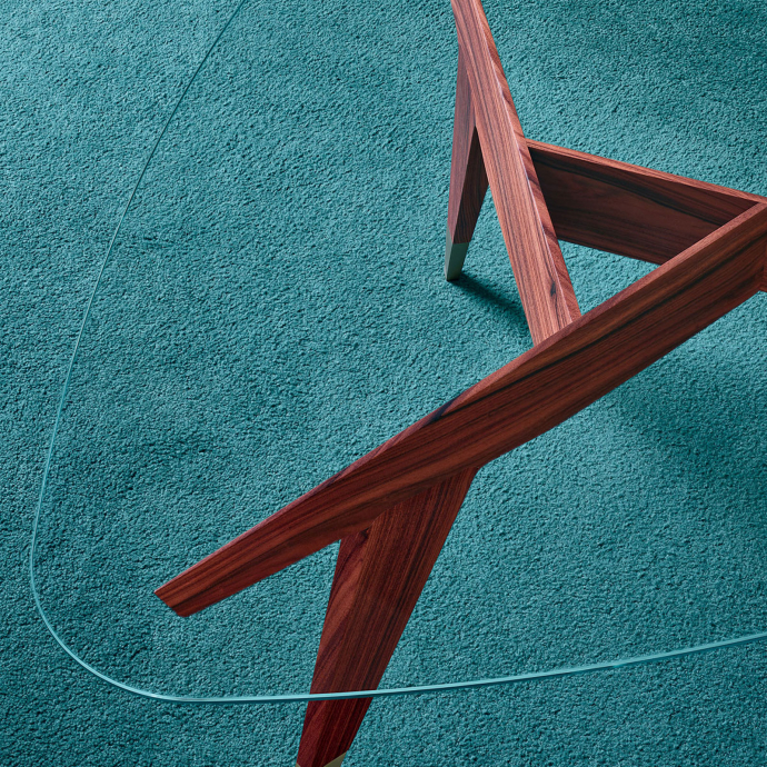 This table embodies a perfect balance between geometry and lightness, blending extra-clear transparent glass with the warmth of rosewood. Its design, characterized by a triangular top and satin brass legs, reflects a sophisticated and timeless aesthetic. Conceived in the 1950s for the New York firm M. Singer Sons, it was part of an exclusive collection intended for the American market. The re-edition of the D.552.2 table, carried out by Molteni, faithfully recovers the essence of the original design and is integrated into the prestigious Gio Ponti Collection. With a focus on the harmony of materials and proportions, this piece becomes an expression of refinement and modernity, maintaining Gio Ponti’s innovative vision and his unmistakable style within contemporary furniture design.