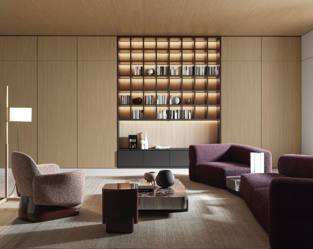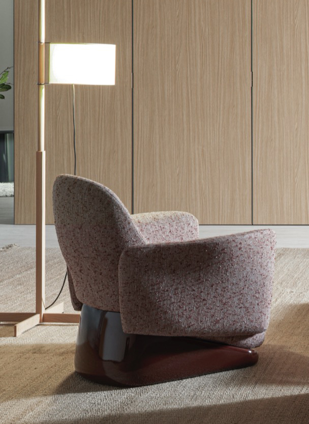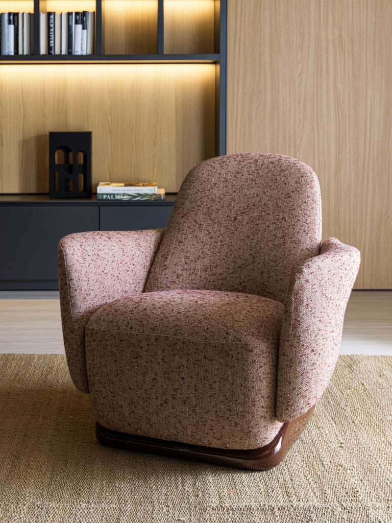 The Eugène armchair, designed by Christophe Delcourt, combines ergonomics and elegance to offer an immersive and luxurious experience. Its high back and smooth lines provide exceptional comfort without sacrificing a sculptural and sophisticated style. The design deconstructs traditional comfort through invisible joints that integrate form and functionality, enhanced by a glossy lacquered base that provides lightness and visual cleanliness. Upholstered in fabric or leather, Eugène is the ideal complement to the Emile sofa and the Maylis and Odile coffee tables, creating a harmonious and refined living room. Made with Polimex, a recycled and recyclable material, it reflects a commitment to sustainability and aesthetic excellence.
