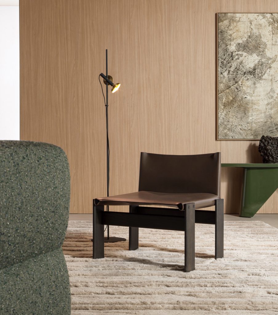 The Monk armchair, designed in 1973 by Afra and Tobia Scarpa for MolteniC, returns in an exclusive re-edition within the Heritage Collection. This iconic piece stands out for its solid American walnut structure, available in coffee oak or black oak finish, which supports a seat and back in soft leather, providing comfort and sophistication. Its design is completed with tensioned steel bars and eight visible rivets, a functional detail that enhances its elegant and essential aesthetic. Inspired by monastic serenity and simplicity, the Monk armchair is a balance between modernity and tradition, where each line reflects the timeless vision of the Scarpas. Perfect for those looking for designer furniture that combines historical design, comfort and exclusivity, this piece becomes a true object of desire for collectors and lovers of contemporary design.