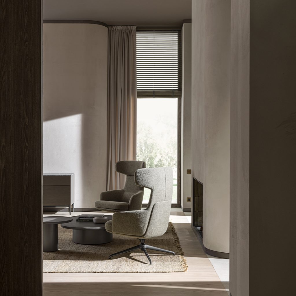 Rodolfo Dordoni presenta la colección Piccadilly, que incluye la butaca berg re version, parte de la Colección 2020. Este proyecto se distingue por la combinación de diversas superficies que crean formas innovadoras y envolventes, disponibles tanto con como sin brazos. La colección destaca la maestría artesanal, utilizando materias primas de primera calidad, como aluminio, textil y piel. Cada elemento refleja la atención al detalle y la pasión por la elaboración, garantizando la versatilidad y el atractivo estético de estas butacas. La colaboración de Dordoni con Molteni&C ha dado lugar a una colección integral para el comedor y sistemas de noche, caracterizada por tecnologías avanzadas que se integran de forma discreta en el diseño.