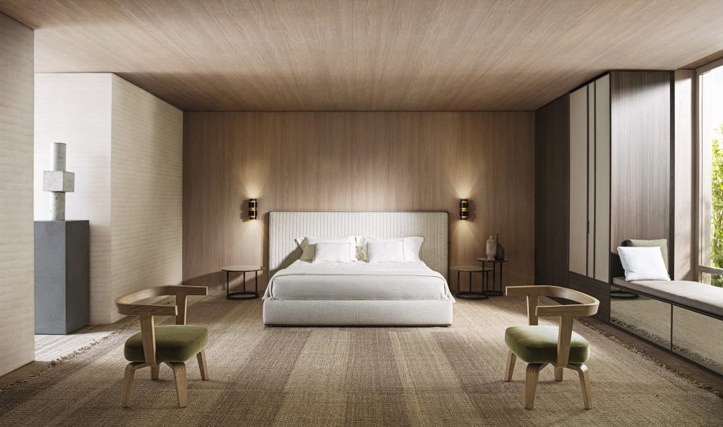 La cama Ovidio de Vincent Van Duysen se erige como el eje central del dormitorio, fusionando elegancia y confort sin escatimar en detalles. Su destacado cabecero, disponible en cuero o tela, se subraya con un marco de metal ahumado de esquinas redondeadas. La parte delantera, revestida en cuero con opciones en tonos sobre tono o contrastados, presenta costuras en forma de diamante que añaden sofisticación. Ovidio se ofrece en tres dimensiones (160, 180 cm y tamaño King), asegurando adaptabilidad en cualquier espacio. Este diseño contemporáneo, que refleja una meticulosa atención a los detalles, es un complemento excepcional para interiores de lujo, consolidándose como una obra maestra en el ámbito del mobiliario.
