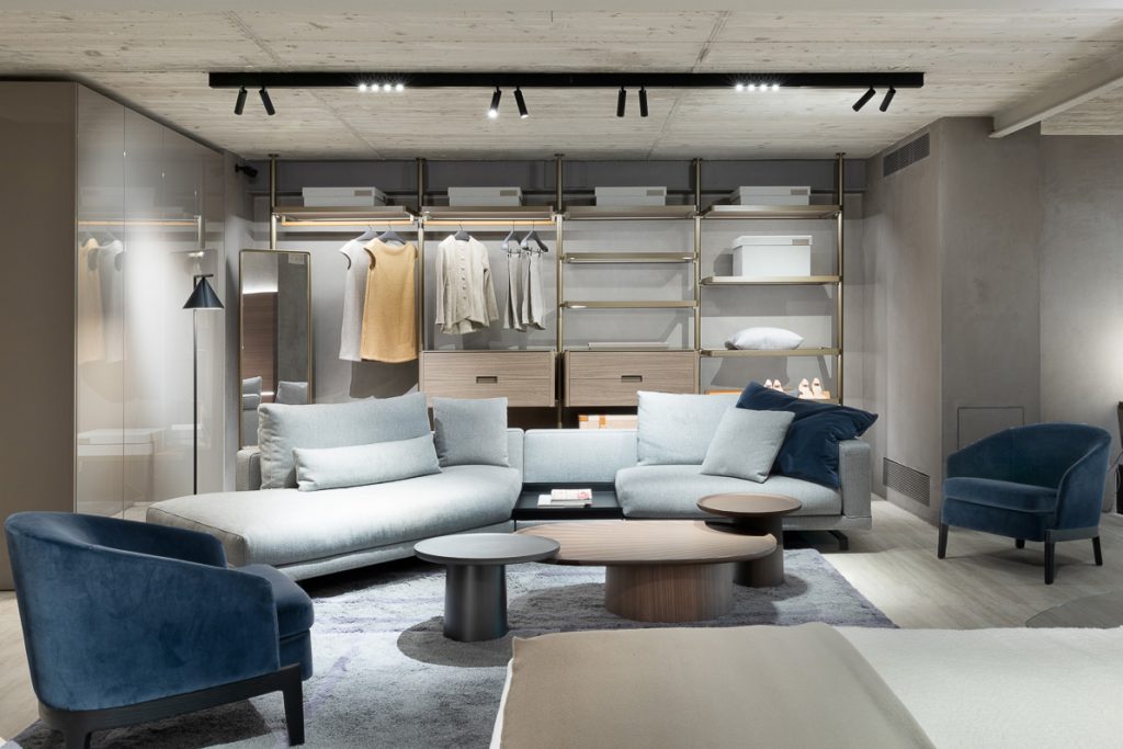 Descripción: Diseñado por Vincent Van Duysen, el sistema modular Octave destaca por sus líneas geométricas rigurosas e inspiración en las grandes vidrieras urbanas, combinando una base elevada sobre pies de acero die-cast con respaldos y asientos de grosor uniforme que transmiten ligereza. Integra elementos abiertos como chaise-longues, pufs y bandejas de piel regenerada, ofreciendo infinitas composiciones adaptables tanto para el hogar como para el “smart working”